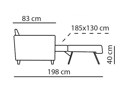 - The outer sides of the armrests, the front panel and the back wall are covered with fabric