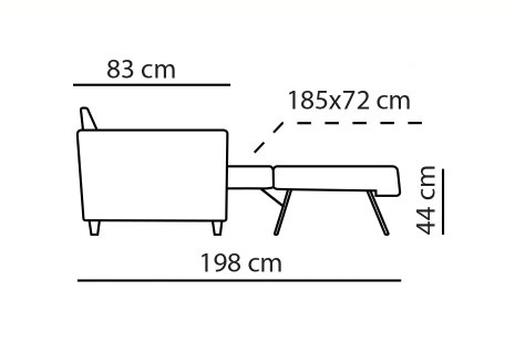 - The outer sides of the armrests, the front panel and the back wall are covered with fabric