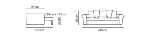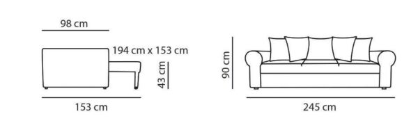 - The inner sides of the sofa’s seating and armrests are covered with fabric