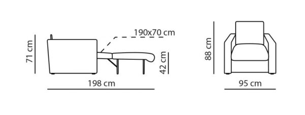 - The outer sides of the armrests, the front panel and the back wall are covered with fabric