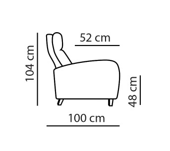 - The outer sides of the armrests, the front panel and the back wall are covered with fabric
