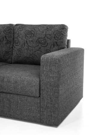 - The outer sides of the armrests, the front panel and the back wall are covered with fabric