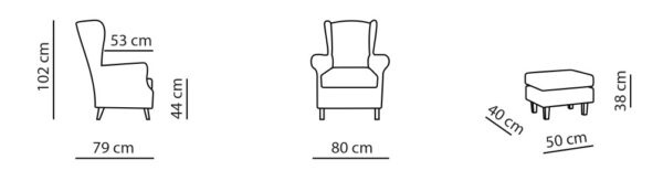 - Käetugede välisküljed, esipaneel ja tagasein on kaetud kangaga