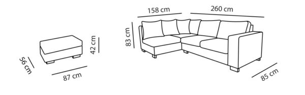 - Diivani istumise osa ja käetugede sisemiste külgede katteks on kangas